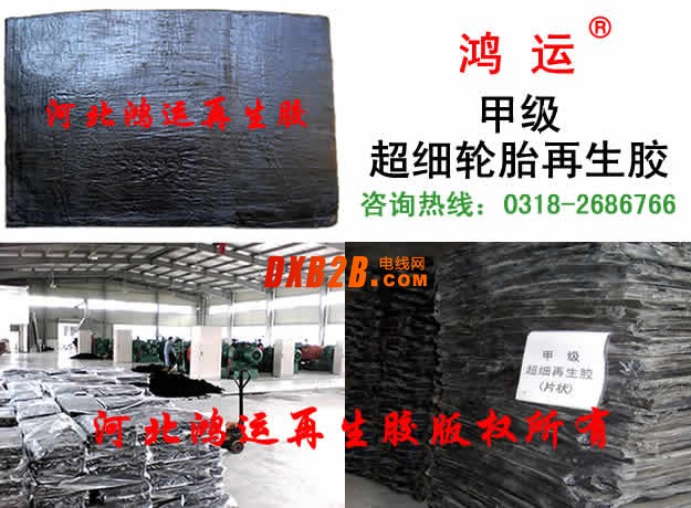 轮胎再生胶(甲级)是河北鸿运特种再生胶公司独家生产的细度高、拉伸强度大、没有味道的轮胎再生胶,产品质量达到欧盟ROHS环保标准,适用制品范围大,可直接用于出口。 H12M14#1214.COG