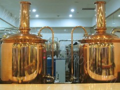 山东汉博自酿啤酒设备采用紫铜及不锈钢材料精工细制而成,糖化锅的紫铜仿古造型,古香古色雍容典雅,该设备采用电加热方式,操作简便,无噪音、无污染。我公司也可根据各酒店的实际情况订制啤酒设备,使得自酿啤酒设备成为提高酒店档次的硬件。现在这种现场酿酒、品酒的原始质朴的酒吧、酒楼已越来越多地出现在都市生活中。