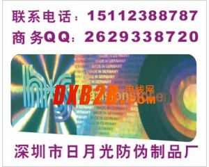 (产品价格只做参考,具体以实样为准)本公司拥有美国的电脑光刻像素制版系统及激光全息生产设备,电脑密码防伪系统及电码防伪标识制作技术。汇集先进的设备和科技人才为一体,提供以图案设计到激光制版、模压、涂布、模切、质量检验及包装运输全系列,全封闭优质服务保证产品质量和防伪安全。严谨的保密制度外,还为客户提供完整的售后服务。欢迎各位朋友业务洽谈!