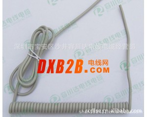 螺旋型弹簧电缆(弹簧线)是一种利用可伸缩性来工作的设备连接线。一般用TPU电缆绕制而成。用以控制可移动设备运动的电连接、可在短时间内迅速回弹,广泛用于汽车,机器,仪表等可移动设备中。按方向分,主要有左方向螺旋弹簧和右方向螺旋弹簧。按材质分:主要有PVC螺旋弹簧电缆(弹簧线),PUR螺旋弹簧电缆(弹簧线)和橡胶螺旋弹簧电缆(弹簧线);PUR螺旋弹簧电缆(弹簧线)具有阻燃,耐油,耐酸碱,耐低温,防紫外线,耐磨,抗水解等特效作为(螺旋型弹簧电缆弹簧线)的首选材料越来越广泛的被运用。其主要运用有: 1.控制系统用PUR/PVC护套(屏蔽)螺旋弹簧电缆(弹簧线):应用于数控机床,生产线,物流系统,机器人等; 2.动力系统用PUR/PVC护套(屏蔽)螺旋弹簧电缆(弹簧线):应用于加工设备,起重机,生产线等; 3.数据/总线传输用PUR/PVC护套(屏蔽)螺旋弹簧电缆(弹簧线):应用于数控机床,生产线,物流系统,机器人等。 4。屏蔽型螺旋电缆。螺旋形弹簧电缆系列:仪器仪表用螺旋电缆:汽车电源用弹簧线:变压器电源用螺旋电缆:大型机电设备用螺旋电缆:清洗机电源用螺旋电缆:电表自动计费专用5芯弹簧线: 5. 螺旋电缆适用于各种机械、升降平台、输送机、输送带、农用设备、工程机械及卡车等对抗化学腐蚀能力、耐温等级、机械强度有较高要求的场合。 6.汽车配件,拖挂车配件 摊铺机配件,找平仪配件 编码器配件 测温仪连接线,补偿导线 对讲机配件 车载设备配件 移动照明车,自动升降灯配件 起重机升降机配件 行车配件 柴油发电机配件 锅炉设备配件 采摘机配件 按摩椅配件 草坪机配件 医疗设备配件 数控机床配件 激光切割机配件 航空设备用螺旋电缆 : (1)螺旋弹簧电缆(弹簧线)直径d:制造弹簧线的电缆直径; (2)螺旋弹簧电缆(弹簧线)外径D:弹簧线的最大外径;(3)螺旋弹簧电缆(弹簧线)内径D1:弹簧线的最小外径; (4)螺旋弹簧电缆(弹簧线)长度L:弹簧线在未受外力的作用下的静态长度; (5)螺旋弹簧电缆(弹簧线)工作长度L0:弹簧线在受外力坐下下的动态长度; (6)螺旋弹簧电缆(弹簧线)展开长度A:绕制弹簧线所需直线的总长度; (7)螺旋弹簧电缆(弹簧线)留尾长度:两头留尾分别用L1和L2表示; (8)螺旋弹簧电缆螺旋方向:有左右旋之分,常用右旋,图纸没注明的一般用右旋。 螺旋弹簧电缆(弹簧线)命名 螺旋弹簧电缆(弹簧线)的完整命名通常较为复杂,所以人们有时用一个简单的名称(通常是一个类别的名称)结合型号规格来代替完整的名称,如“RVUT3*0.5”代表PVC绝缘PUR护套3芯0.5平方的螺旋电缆。 R:代表软导体结构,螺旋电缆一般均采用软导体结构,伸缩性好。 V:代表绝缘层的材料, PVC绝缘料。 U:代表护套层的材料,PUR护套料。 T:表示弹簧,也即是螺旋。 数字“3”:表示绝缘线的根数为3根 数字“0.5”:表示绝缘线的导体截面平方数为0.5平方的铜导体。 螺旋弹簧电缆(弹簧线)的分类 螺旋弹簧电缆(弹簧线)的分类可通过护套材料进行分类,主要可分为:PVC螺旋弹簧电缆(弹簧线),PUR螺旋弹簧电缆(弹簧线),PA螺旋弹簧电缆(弹簧线),和橡胶螺旋弹簧电缆(弹簧线)四大种。 PVC螺旋弹簧电缆(弹簧线)价位最低但性能最差,不易回弹,在电气性能及物理性能方面都不及其他电缆,主要用在低端设备种,如电话线。 橡胶螺旋弹簧电缆(弹簧线),价位高于PVC螺旋电缆,但应为其弹性不佳及容易沾粘在国内并未得到广泛应用。 PA螺旋弹簧电缆(弹簧线),价位最高,各方面性能优越,但因为其硬度太高,回弹性过强,在使用过程中不易控制,故应用范围并不广泛。 PUR螺旋弹簧电缆(弹簧线),电缆材料制成的螺旋电缆,适用范围广泛,性能最优。PUR螺旋弹簧电缆(弹簧线),耐油耐水解,耐弱酸弱碱,抗老化,防紫外线,防微生物腐蚀等多种优异的化学性能,及耐磨,抗撕裂,和弹性佳等多种优异的物理性能。逐渐成为主导型螺旋电缆替代着市场上的其他类型螺旋电缆