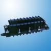 5、按接头盒需要的容量不同,决定熔接盘叠加的盘数,将熔接盘的叠加型式必须符合光纤接头的卡入熔接单元并检查和维护要求。 熔接盘每两只叠加,可以将橡胶折页上六个孔,分别卡住上下两个盘上的各三个凸扭;四只橡胶折页,盘两边对称位置各两只,如叠加五个熔接盘,依照上述方法将二层盘与三层扣住,三层盘和四层盘扣住,四层盘和五层盘扣住,以此类推,五个盘就稳定地叠加在一起了。 当需察看或维护某一层盘熔接情况时,只要将该盘单面的上层扣住的两片折页拆下,熔接盘即可如翻书页一样打开。